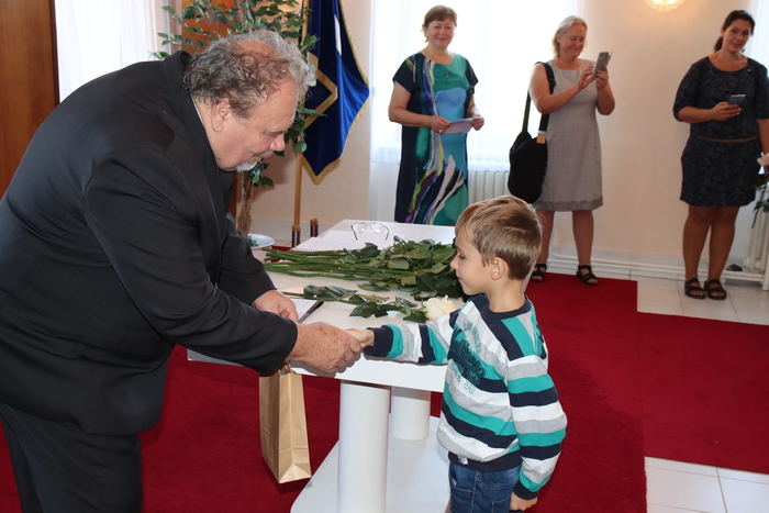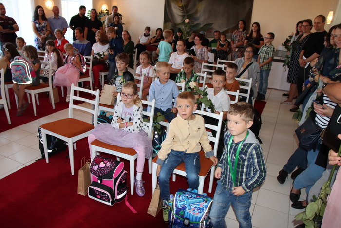 Slavnostní přivítání nových žáků naší školy proběhlo na Obecním úřadě v Českém Meziříčí. Žáky ze dvou prvních tříd přivítal starosta obce Ing. Milan Žďárek a předal jim drobné dárky jako památku na tento den. Nechyběla ani kytička pro maminku jako poděkování za jejich péči.