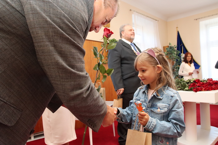 Žáky prvních tříd za přítomnosti jejich rodičů a prarodičů slavnostně přivítal na Obecním úřadě v Českém Meziříčí pan starosta Ing. Milan Žďárek. Všem prvňáčkům podal ruku a slavnostně jim předal dárky, které využijí ve školních lavicích. Někteří z prvňáčků museli překonat obavy, ale díky vlídnému přijetí to nakonec všichni zvládli.