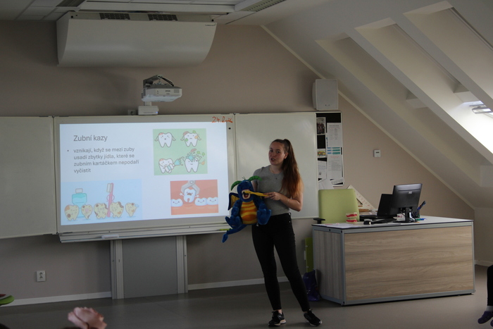 Koho z nás někdy nebolel zub. Snad úplně každého. A aby tomu tak nebylo, přijela za námi do školy lektorka Kateřina Sprinzová s výukovým programem pro první stupeň, Zdravý úsměv.