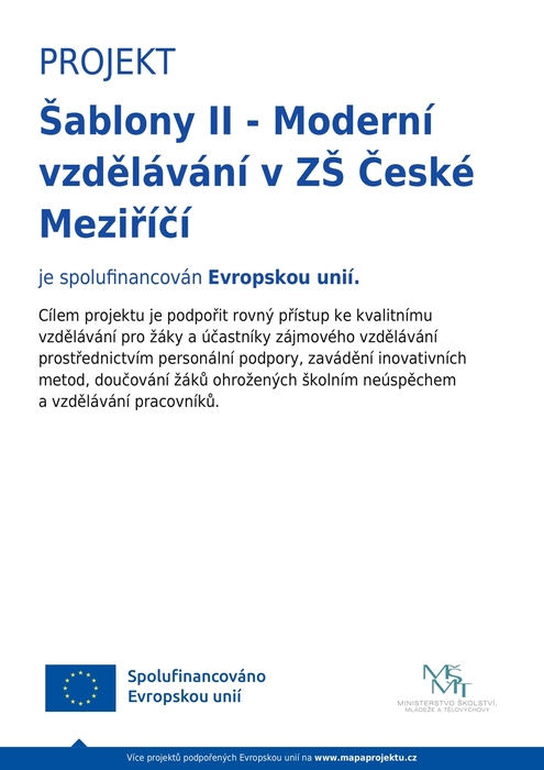 Úvod > O škole > Projekty > Šablony II - Moderní vzdělávání v ZŠ České Meziříčí